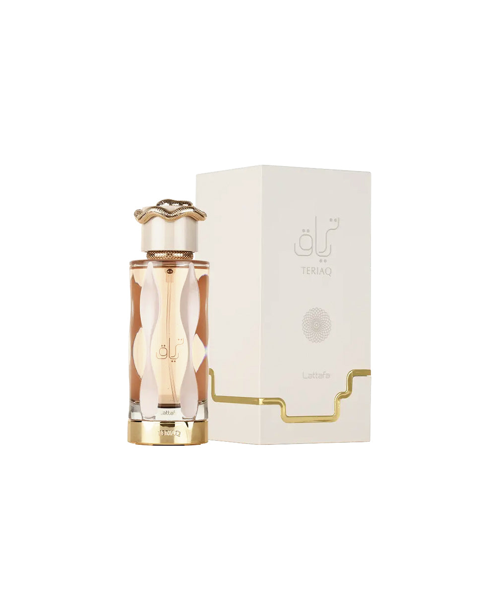 Teriaq by Lattafa Perfumes is a modern, gourmand scent for men and women. With pink pepper, caramel, white flowers, honey, and a vanilla-leather base, this perfume appeals to the Pakistani audience seeking a unique, sophisticated blend of sweetness and depth.